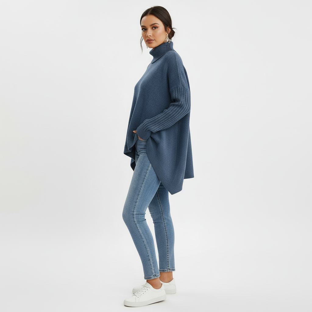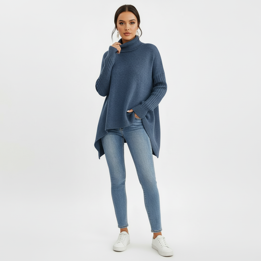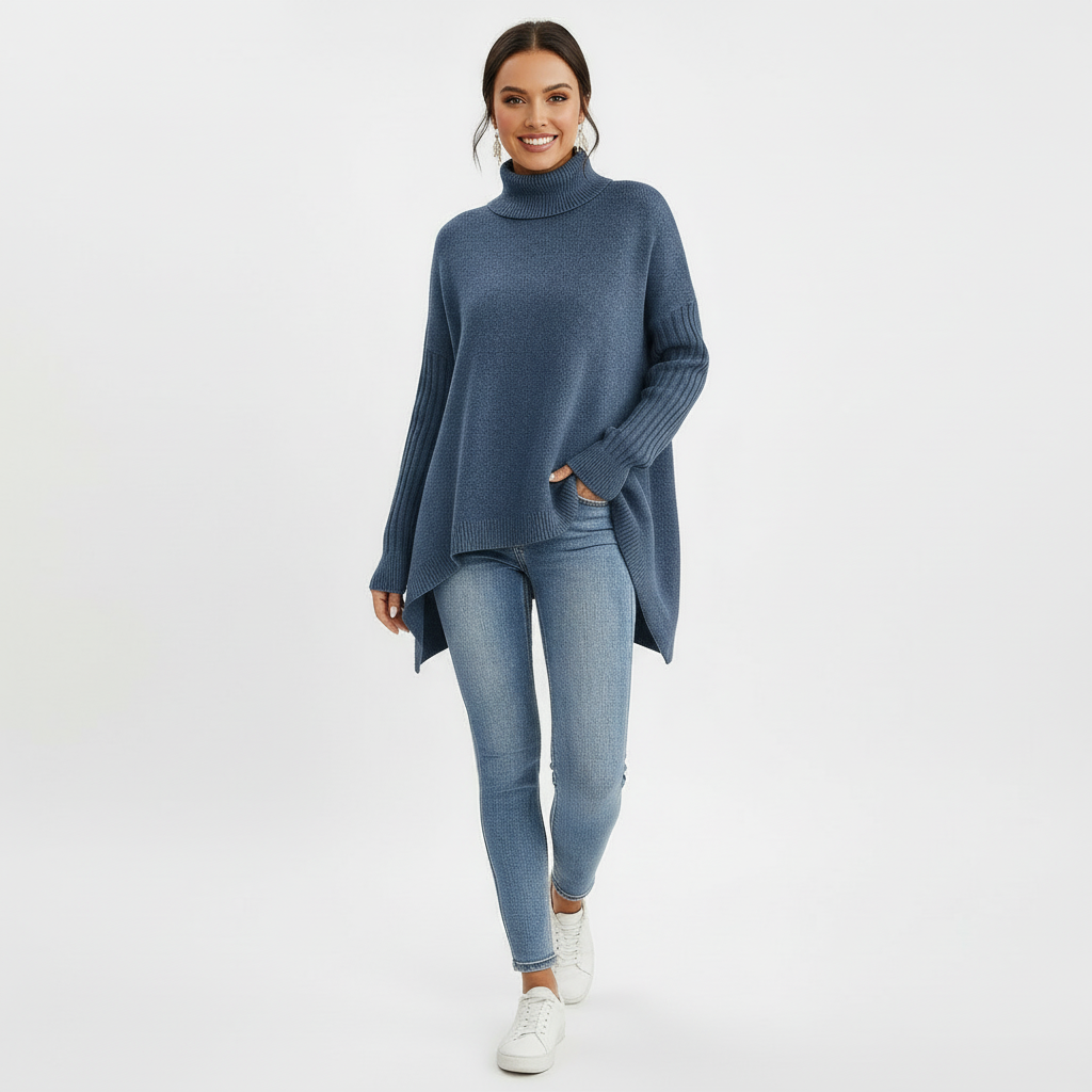 Entdecke die mühelose Eleganz mit Brigit — dem Pullover mit Rollkragen in lockerer Passform!